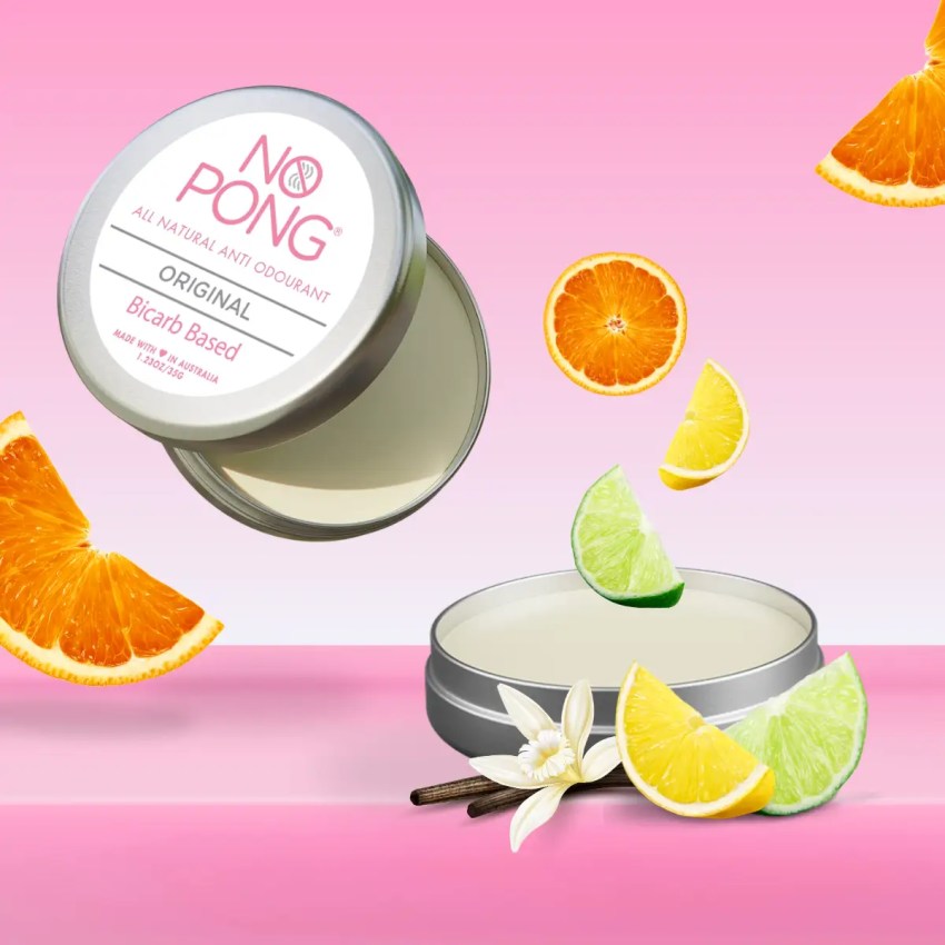 This tin of No Pong uses our Original bicarb based formula. It is crafted with a base of coconut oil, beeswax, and corn starch, featuring sodium bicarbonate (bicarb soda) as the primary active ingredient to reduce body odour. Due to the ingredients, the cream in our Original formula is smooth and typically features a creamy yellow hue.