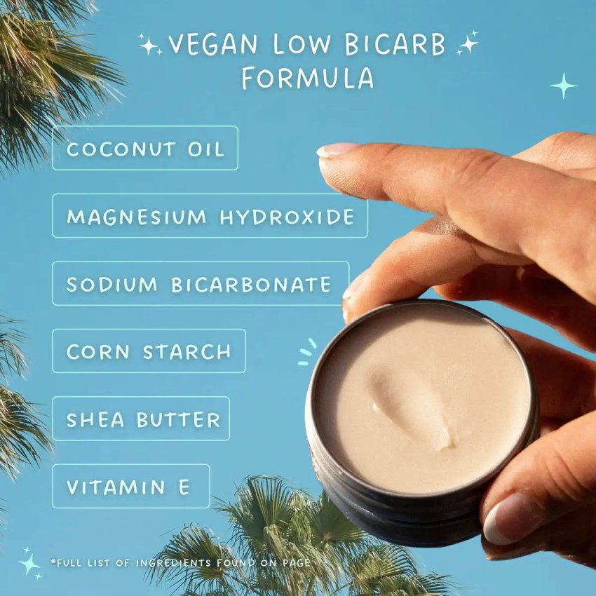 Low bicarb, vegan (no beeswax) with Vitamin E for an armpit nourishing formula suitable for all skin types.